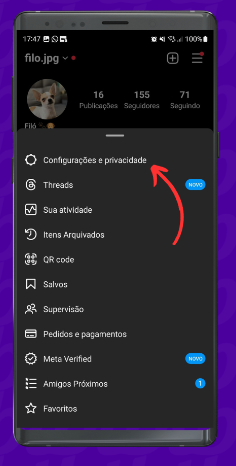 1) Entre no Instagram e acesse o seu perfil do caderno virtual (conta que deseja tornar privada).