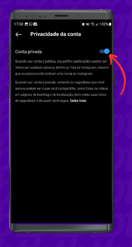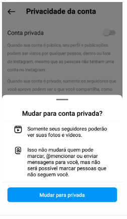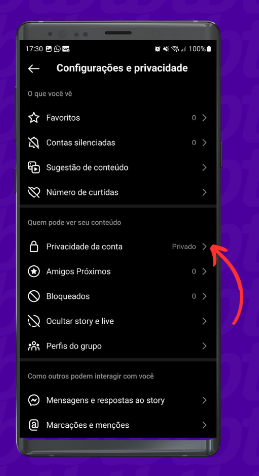 4) Toque em “Privacidade da conta” e ative a chave ao lado de “Conta privada”